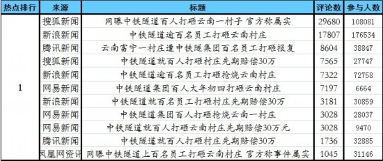 今日舆情热点: 中铁隧道员工打砸云南村庄先赔偿30万