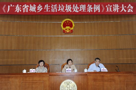 陈小川在会上对条例的立法背景、立法意义、重点内容作了全面宣讲。条例是针对我省城乡生活垃圾处理工作存在的突出问题,在总结实践经验的基础上制定的一部具有广东特色的地方性法规。条例将农村生活垃圾处理纳入了法制范畴,建立完善了城乡生活垃圾分类制度、垃圾收运处理体系及垃圾处理设施建设规定,并从财政预算和垃圾处理收费等方面明确了经费保障。